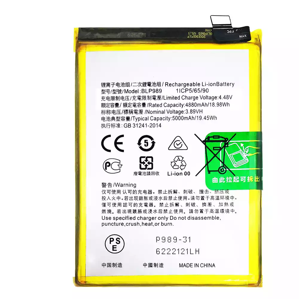 แบตเตอรี่โทรศัพท์มือถือ BLP989 สำหรับรุ่น OPPO A98 5G /OnePlus Nord N30 5G /OnePlus Nord CE 3 Lite