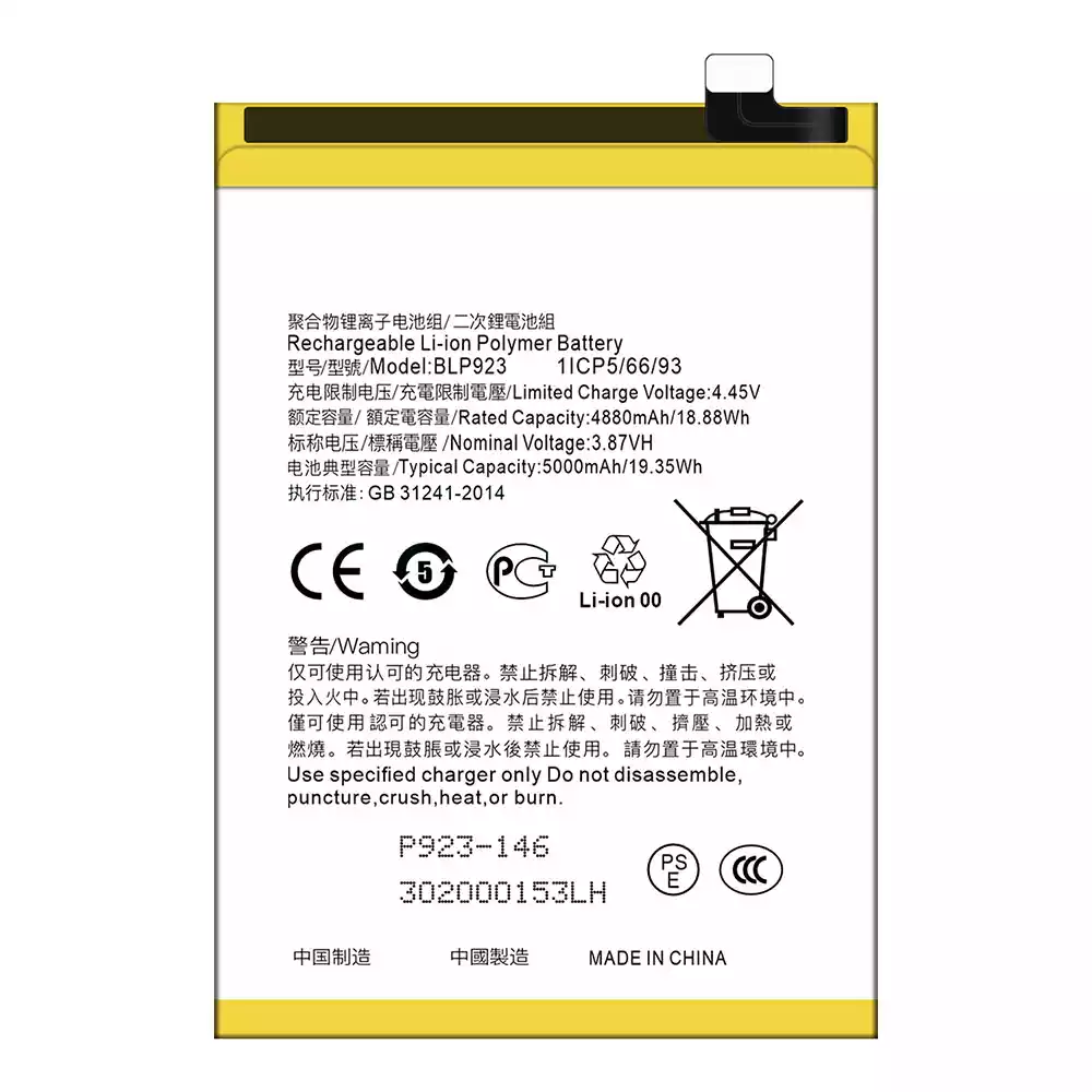 แบตเตอรี่ BLP923 สำหรับรุ่น OPPO A57 2020 /A57 4G 2022 /A57 2022 /A77 4G /A77 5G /A77s /A78 5G /A97 5G / K10 5G / OnePlus Nord N20 SE /OnePlus Nord N300 5G /Realme C51