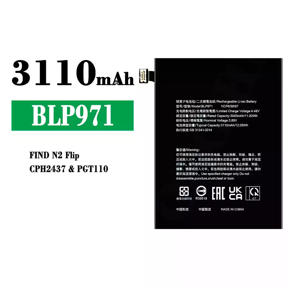 แบตเตอรี่ BLP971 สำหรับรุ่น OPPO FIND N2 Flip/CPH2437/PGT110