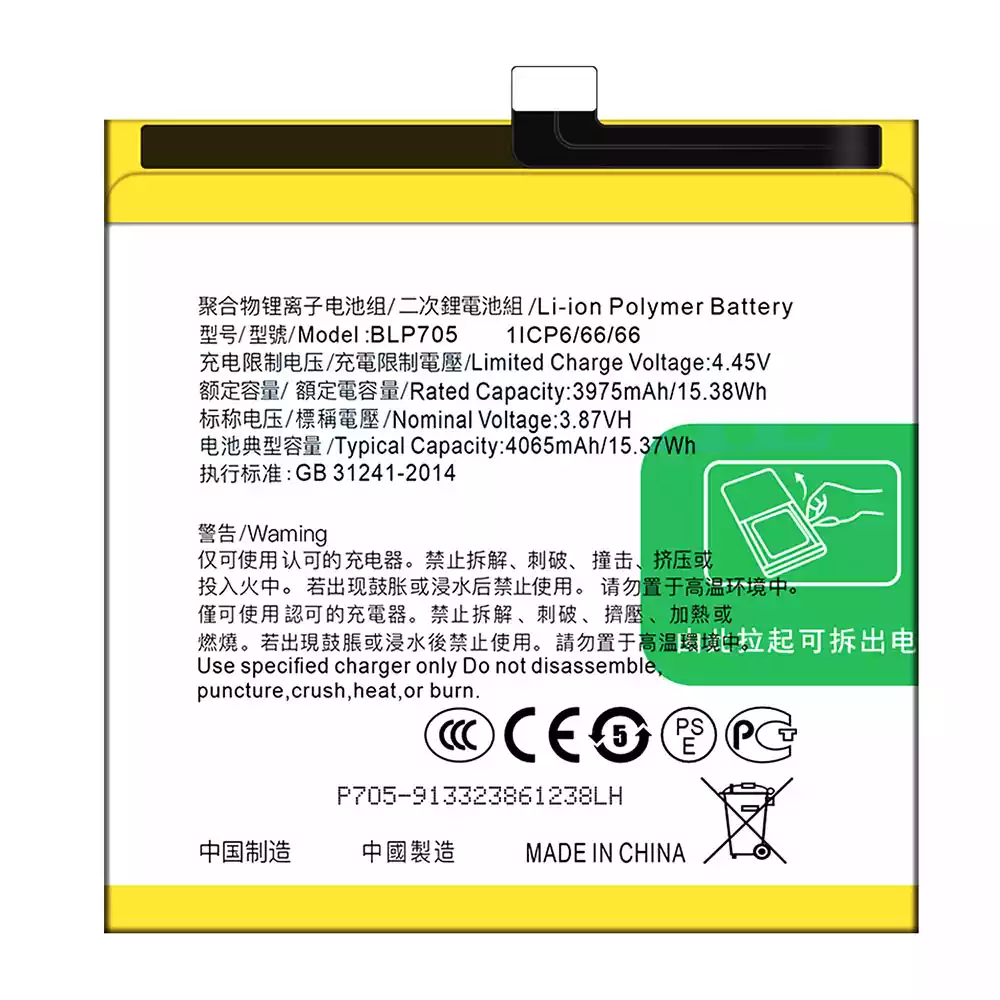 แบตเตอรี่โทรศัพท์มือถือ BLP705 สำหรับรุ่น OPPO Reno 10X Zoom/Reno 10