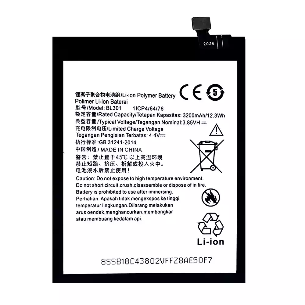 แบตเตอรี่ BL301 สำหรับรุ่น Lenovo K6 Enjoy L38082
