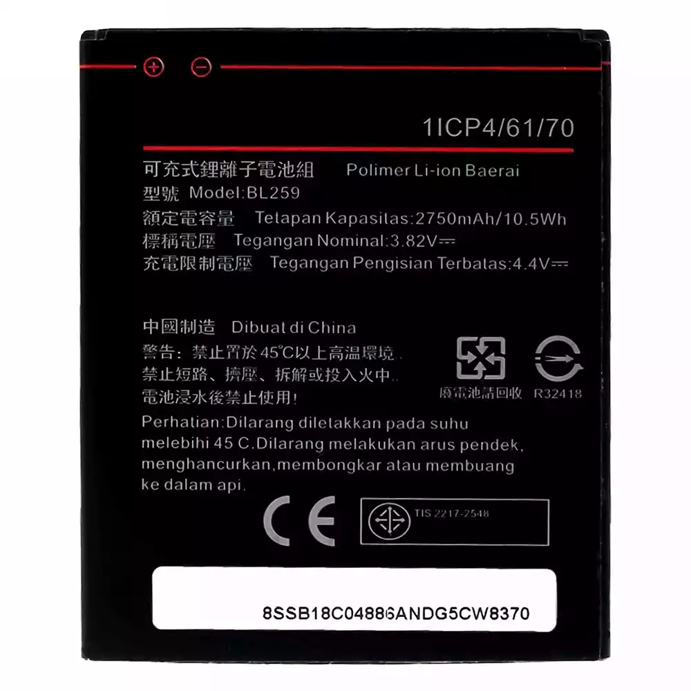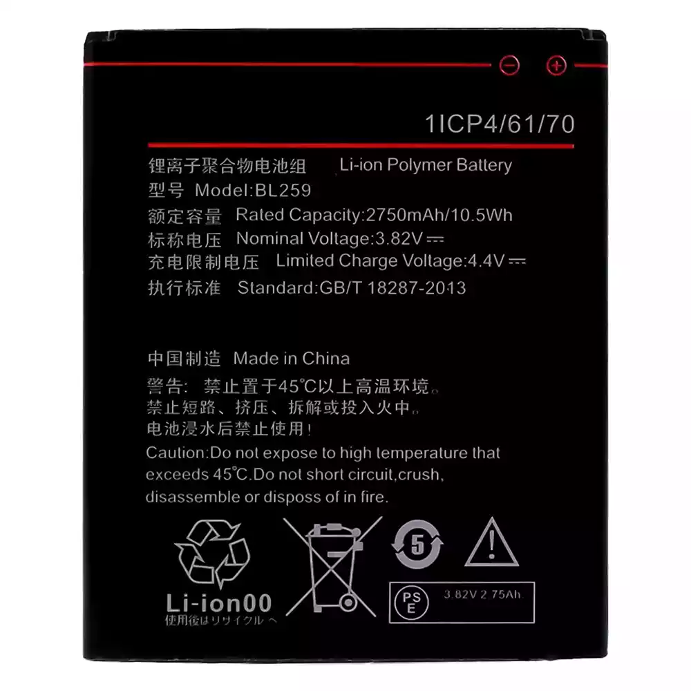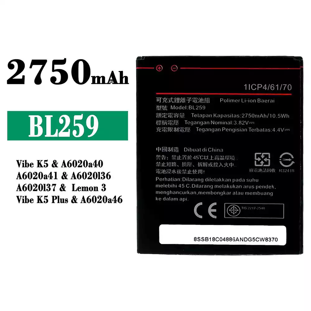 แบตเตอรี่ BL259 สำหรับรุ่น Lenovo Vibe K5 / A6020a40 / A6020a41 / A6020136 / A6020137 / Lemon 3 / Vibe K5 Plus / A6020a46