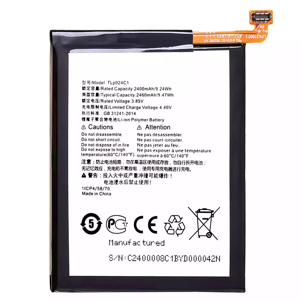 แบตเตอรี่ TLP024C1 สำหรับรุ่น Alcatel 1x /5059/5059D/5059I/5059A/5059Y/5059X/5059J/5059T/5059Z