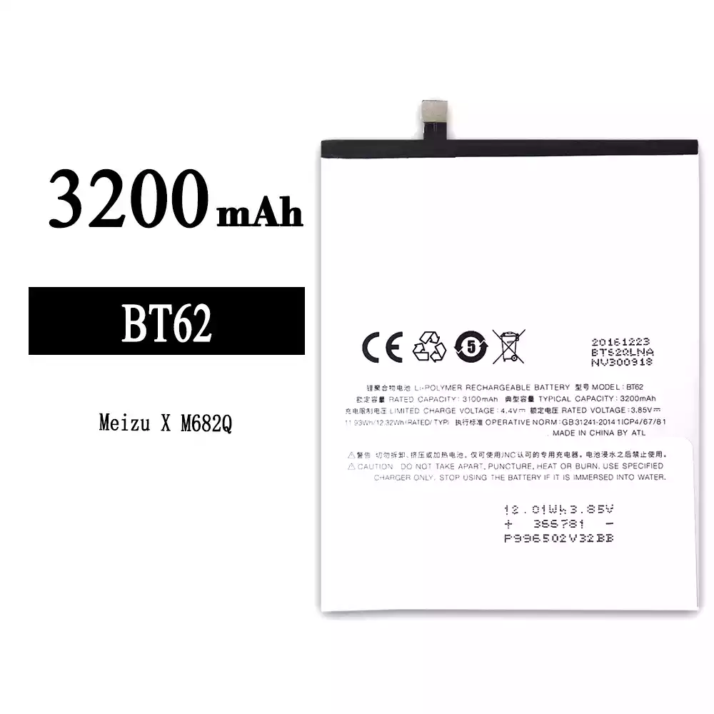 แบตเตอรี่ BT62 สำหรับรุ่น Meizu X/M682Q