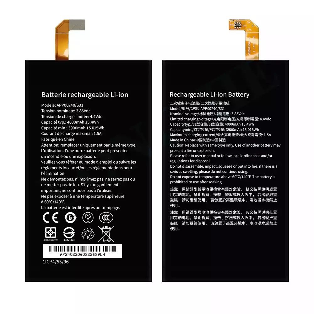แบตเตอรี่โทรศัพท์มือถือ APP00240 สำหรับรุ่น CAT S31