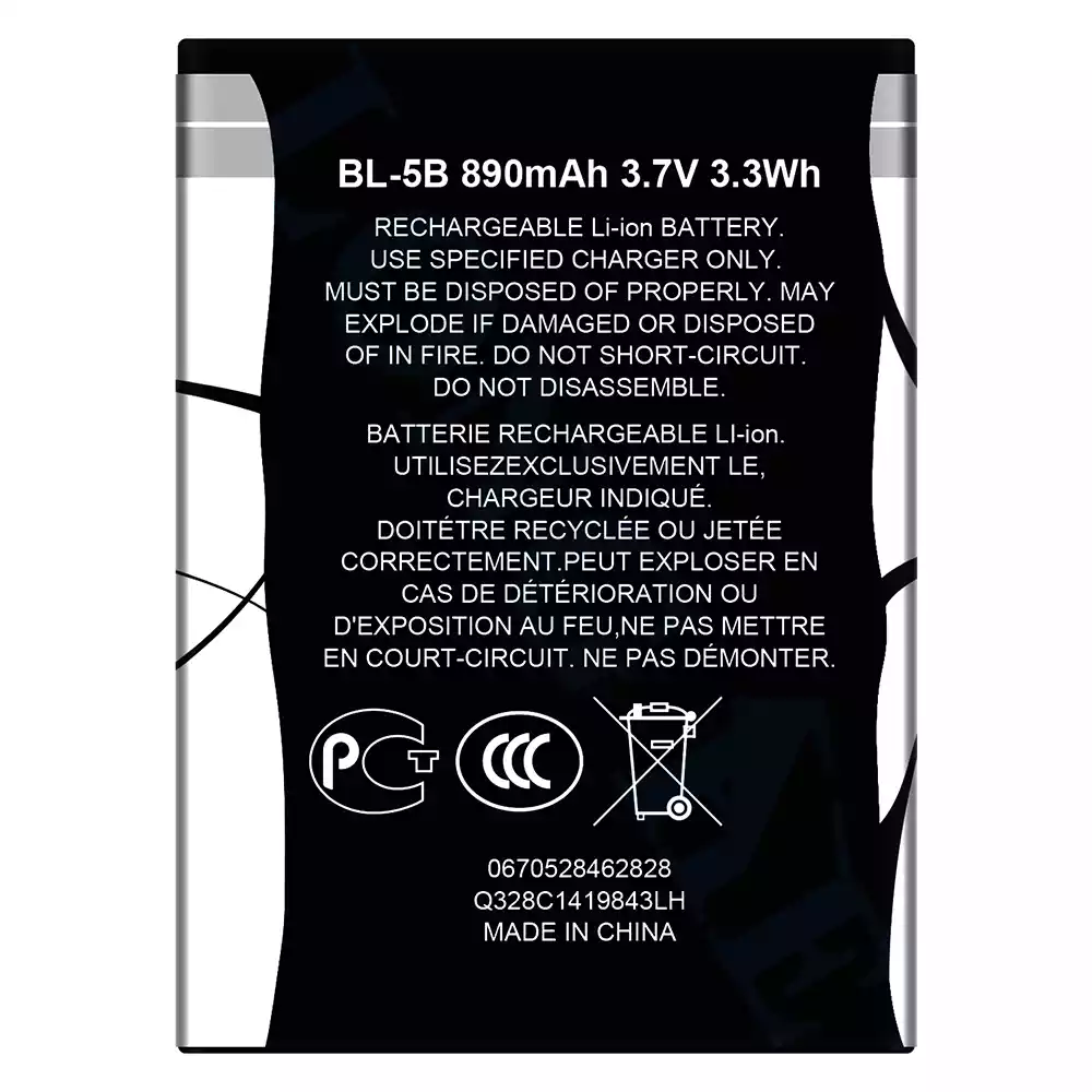 แบตเตอรี่โทรศัพท์มือถือ BL-5B สำหรับรุ่น Nokia 3230/3220/5140/5300/5320/7360/6120C/5070