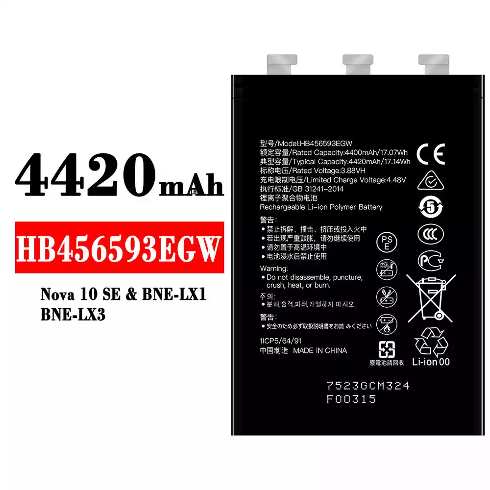 แบตเตอรี่ HB456593EGW สำหรับรุ่น HUAWEI Nova 10 SE / BNE-LX1 / BNE-LX3