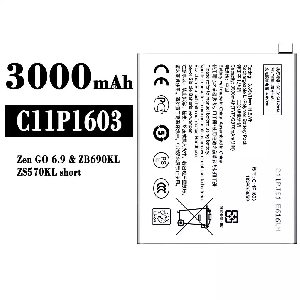 แบตเตอรี่ C11P1603 สำหรับรุ่น Asus Zen GO 6.9 / ZB690KL / ZS570KL Short