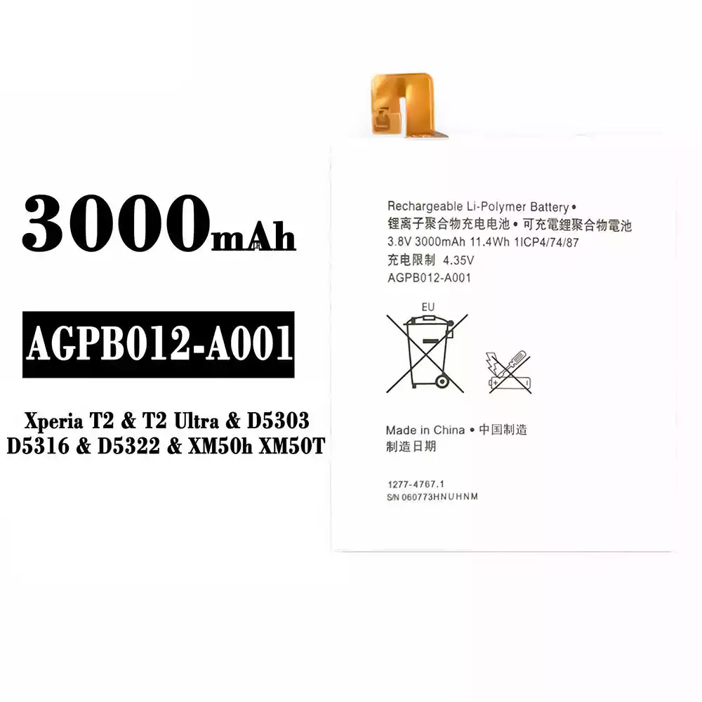 แบตเตอรี่ AGPB012-A001 สำหรับรุ่น Sony Xperia T2 / T2 Ultra / D5303 / D5316 / D5322 / XM50h / XM50T