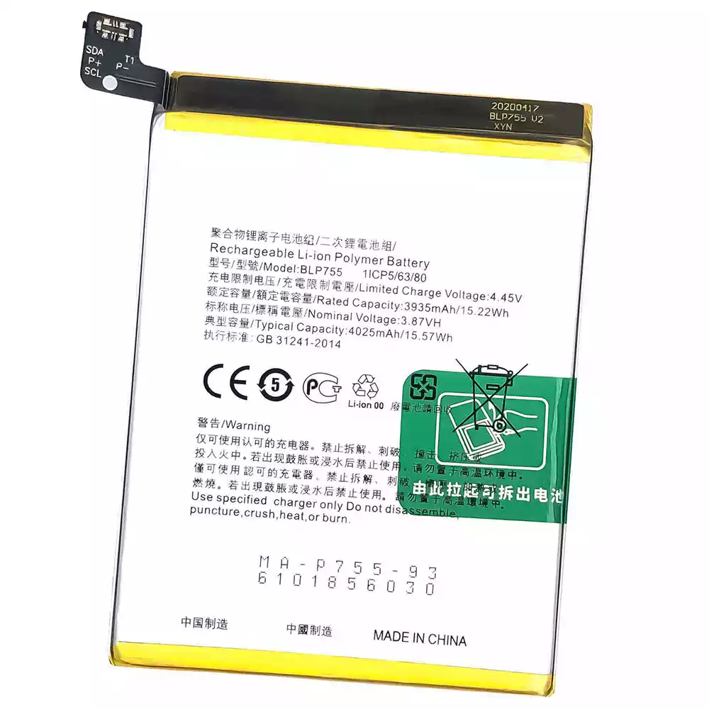แบตเตอรี่ BLP755 สำหรับรุ่น OPPO Reno3 4G 2020 / Reno3 5G / Reno3 Pro / Reno3 Pro 5G / Reno3 Youth / CPH2009 / PCRM00 / PCRT00 / Find X2 Lite